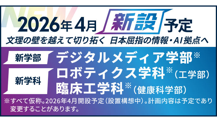 名 称:デジタルメディア学部 デジタルメディア学科(仮称)※