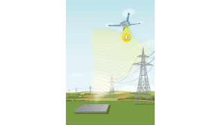 マイクロ波を用いる無線電力伝送は遠方への電力伝送が可能です。例えば高圧電線の保守点検をドローンで行う場合、充電の際はその都度作業を中断する必要がありますが、無線電力伝送技術を使えば、長時間にわたって連続して点検を続けることが可能となります。
