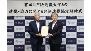 近畿大学(大阪府東大阪市)と有田川町(和歌山県有田郡)は、令和3年(2021年)7月26日(月)、有田川町役場吉備庁舎にて、包括連携協定を締結しました。今回の包括連携協定により、有田川町ふるさと納税返礼品としての近畿大学の研究成果の提供や、近畿大学の教員による有田中央高校での出前授業の実施、地元企業との産学官連携商品の開発など、地域資源を生かした取り組みの推進を軸に地域活性化を目指します。