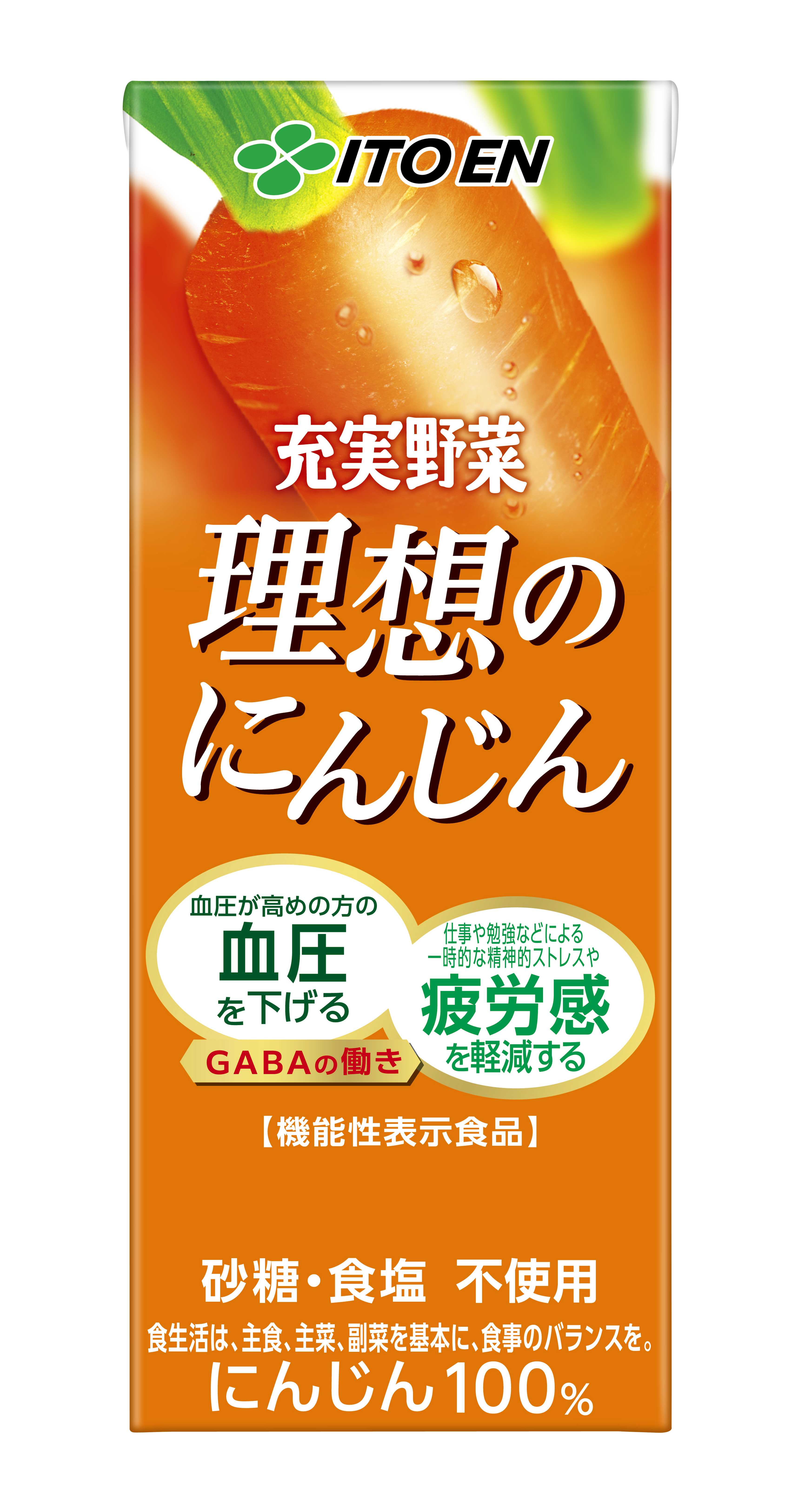 株式会社伊藤園(社長:本庄大介 本社:東京都渋谷区)は、野菜が手軽においしく補える「充実野菜」ブランドから、にんじん由来のGABAの働きで「血圧が高めの方の血圧を下げる」「仕事や勉強などによる一時的な精神的ストレスや疲労感を軽減する」2つの機能を持つ機能性表示食品「充実野菜 理想のにんじん」を4月21日(月)に新発売します。