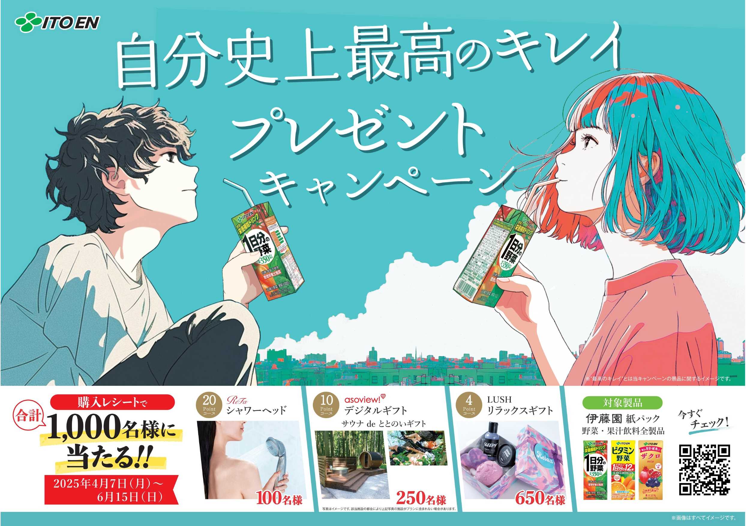 期間内に対象製品を購入し、レシート画像を撮影・アップロードすると、ポイントが加算されます。希望賞品のポイントを貯めて、ご応募いただけます。20ポイントで『ReFa FINE BUBBLE ONE』、10ポイントで『アソビューギフト サウナdeととのいギフト』、4ポイントで『LUSH リラックスギフト』を合計1,000名様に抽選でプレゼントいたします。
