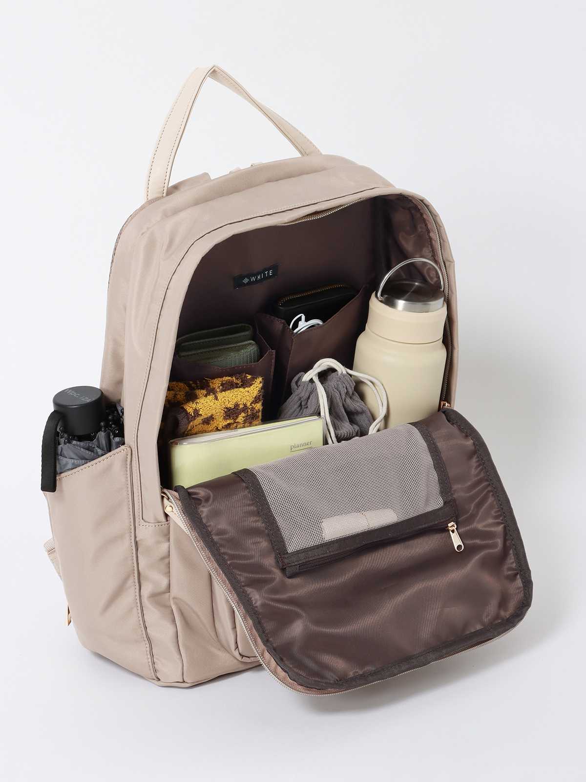 お弁当箱やメイク道具など必需品を収納できる大容量メイン室