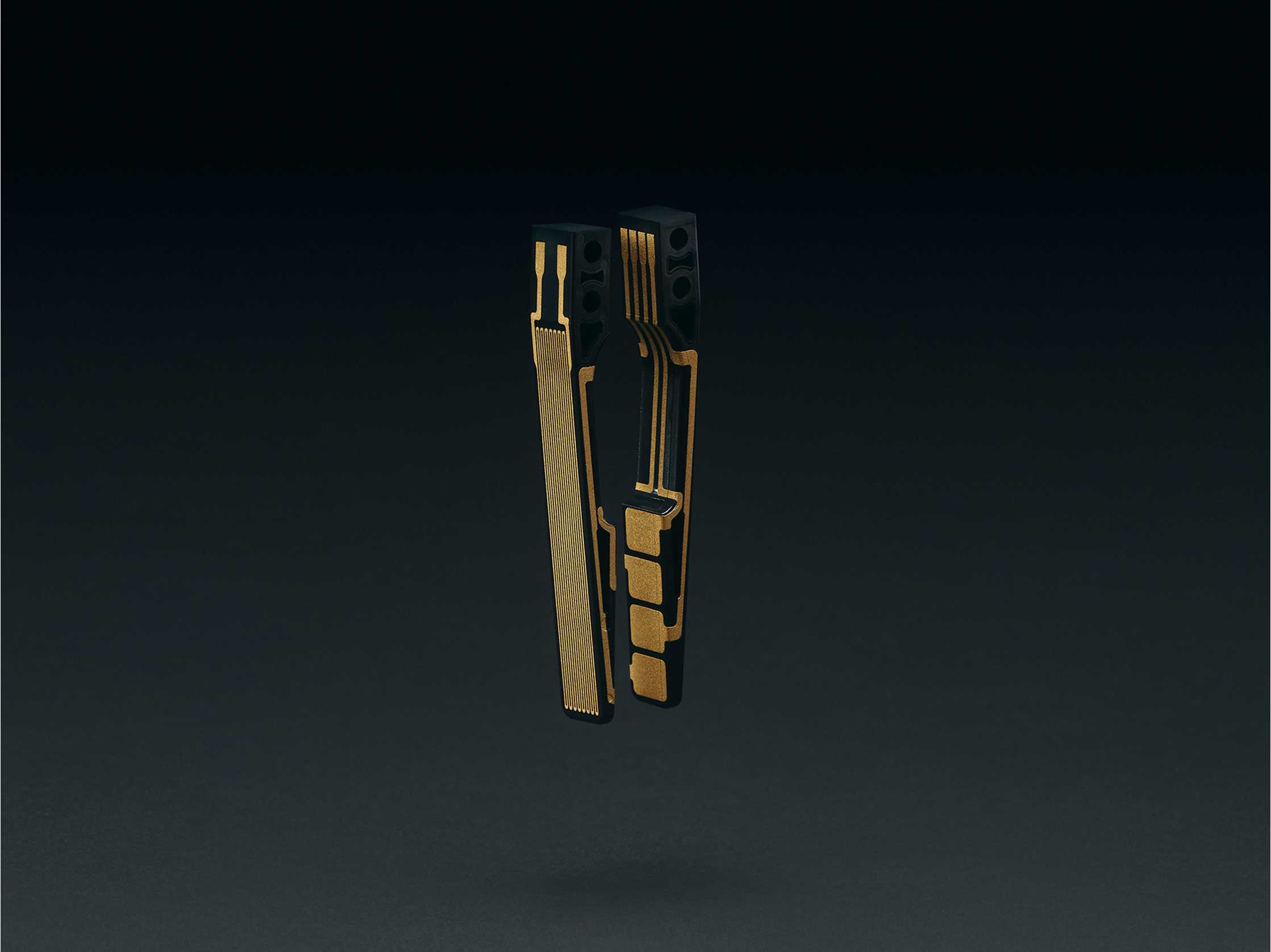 カメラや外部センサに頼らず、対象物を認識して自在に把持できる革新的なロボットフィンガーです。3次元曲面にMID技術を用いてセンサ機能を組み込んだこのロボットフィンガーは、やわらかい食品から硬い金属部品まで、対象の形状を直接検知し、素材に応じて最適な力で自動的に把持します。従来は困難だった環境でのセンシングや操作を可能にし、食品や半導体などの製造工場、ラボオートメーションなど幅広い分野での応用を想定しています。