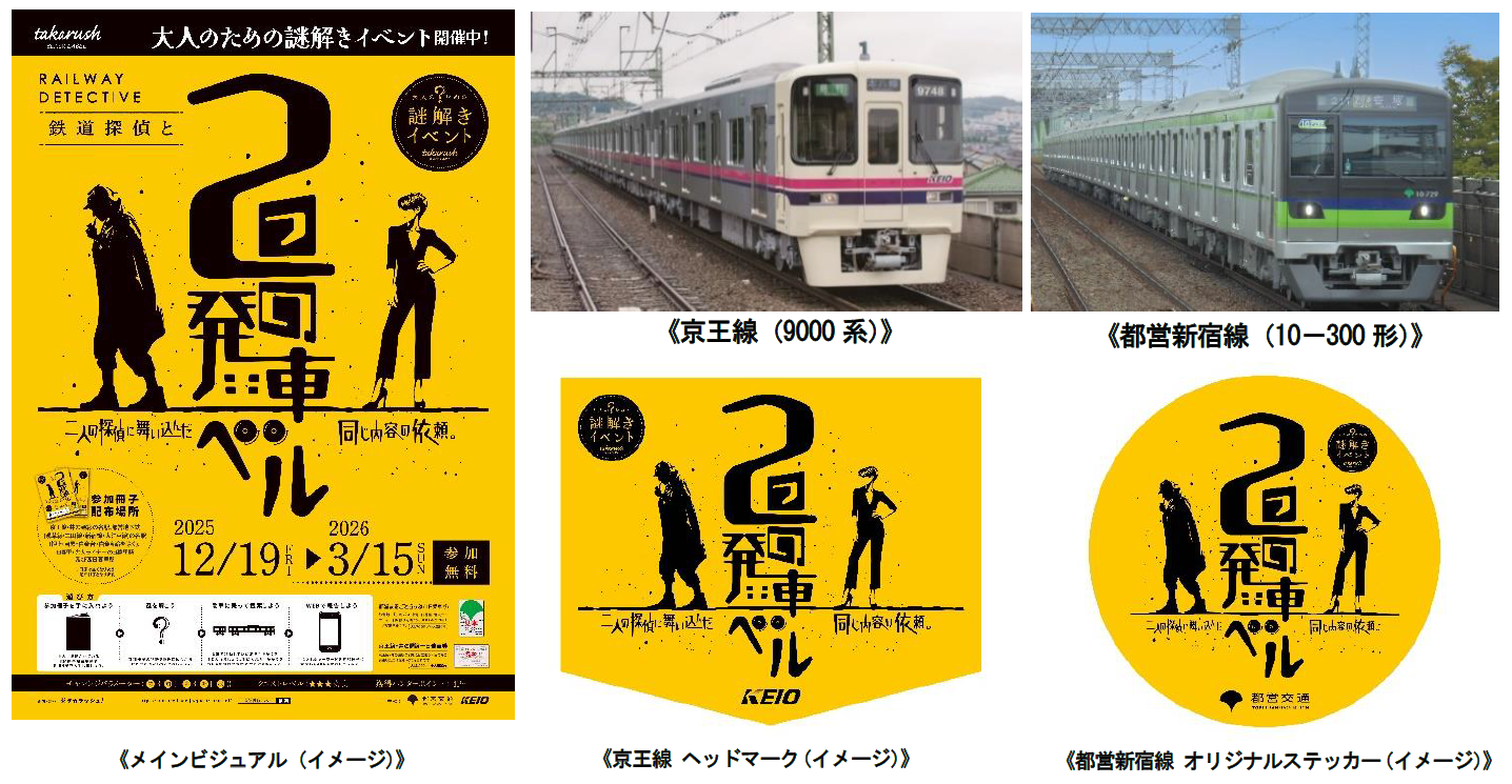 大人のための謎解きイベント『鉄道探偵と2つの発車ベル』を2025年12月19日(金)から2026年3月15日(日)まで実施します。本イベントは、駅で配布する冊子に記載された謎を解き京王線・井の頭線・都営地下鉄の沿線をまわり、集めた手がかりを頼りに謎を解き明かしていく体験型イベントです。