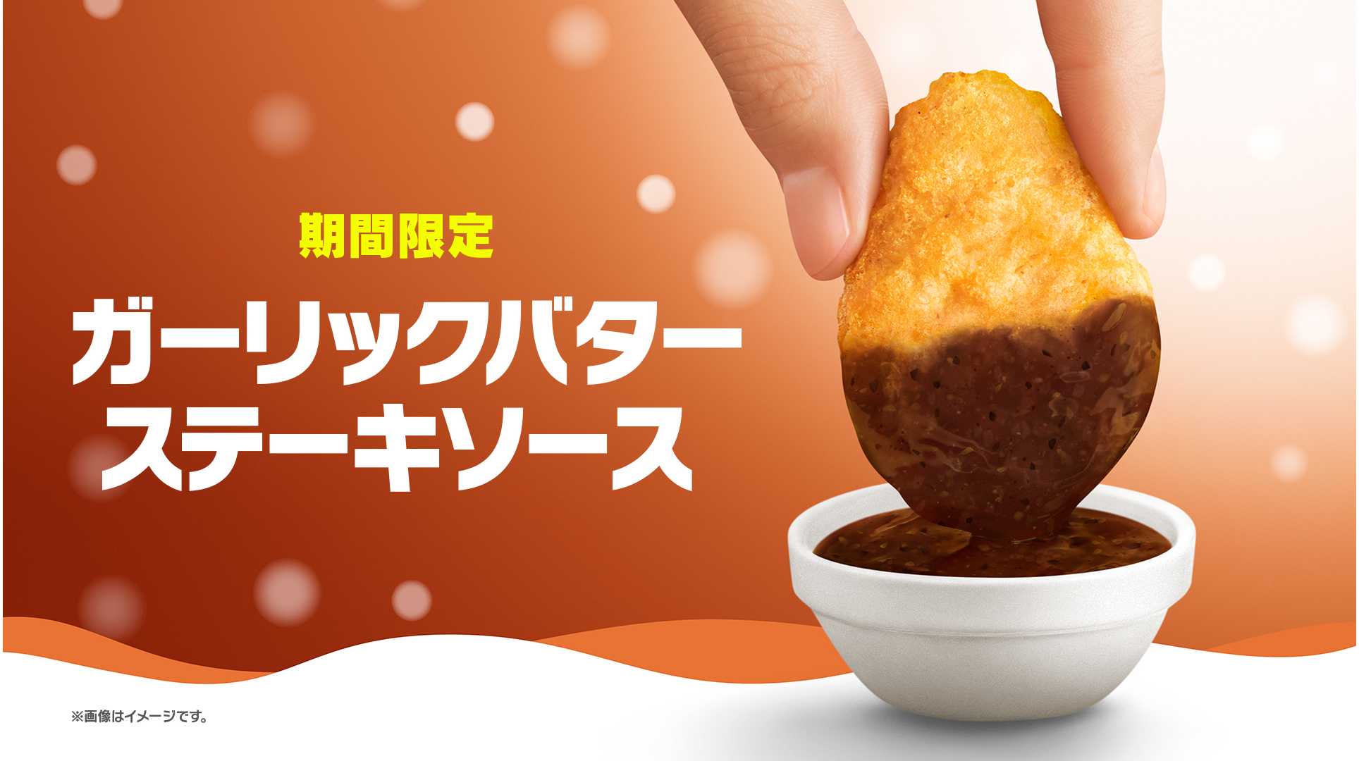 「ガーリックバターステーキソース」は、ソテーガーリックの旨味に、バターのほんのりやさしい甘さと香ばしい風味を合わせた贅沢な味わいのステーキソースです。「チーズフォンデュ風ソース」は、3種のチーズ(カマンベール、チェダー、パルメザン)をブレンドすることで、深みのあるチーズソースに仕上げました。クリスマスなどで大切な人と過ごすひとときに30ピースのナゲットを囲んで、2種類の相性抜群な期間限定ソースをたっぷりとつけてお楽しみください。ソースは単品購入(40円~)も可能ですので、マックフライポテト(R)など、ナゲット以外のメニューにもぜひお試しください。※期間限定ソースは一部の店舗で販売を終了している場合があります。