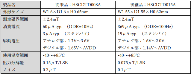こうした市場ニーズに応えるべく、当社は極小サイズを維持しながら性能を大幅に向上させた 「HSCDTD015A」を開発しました。