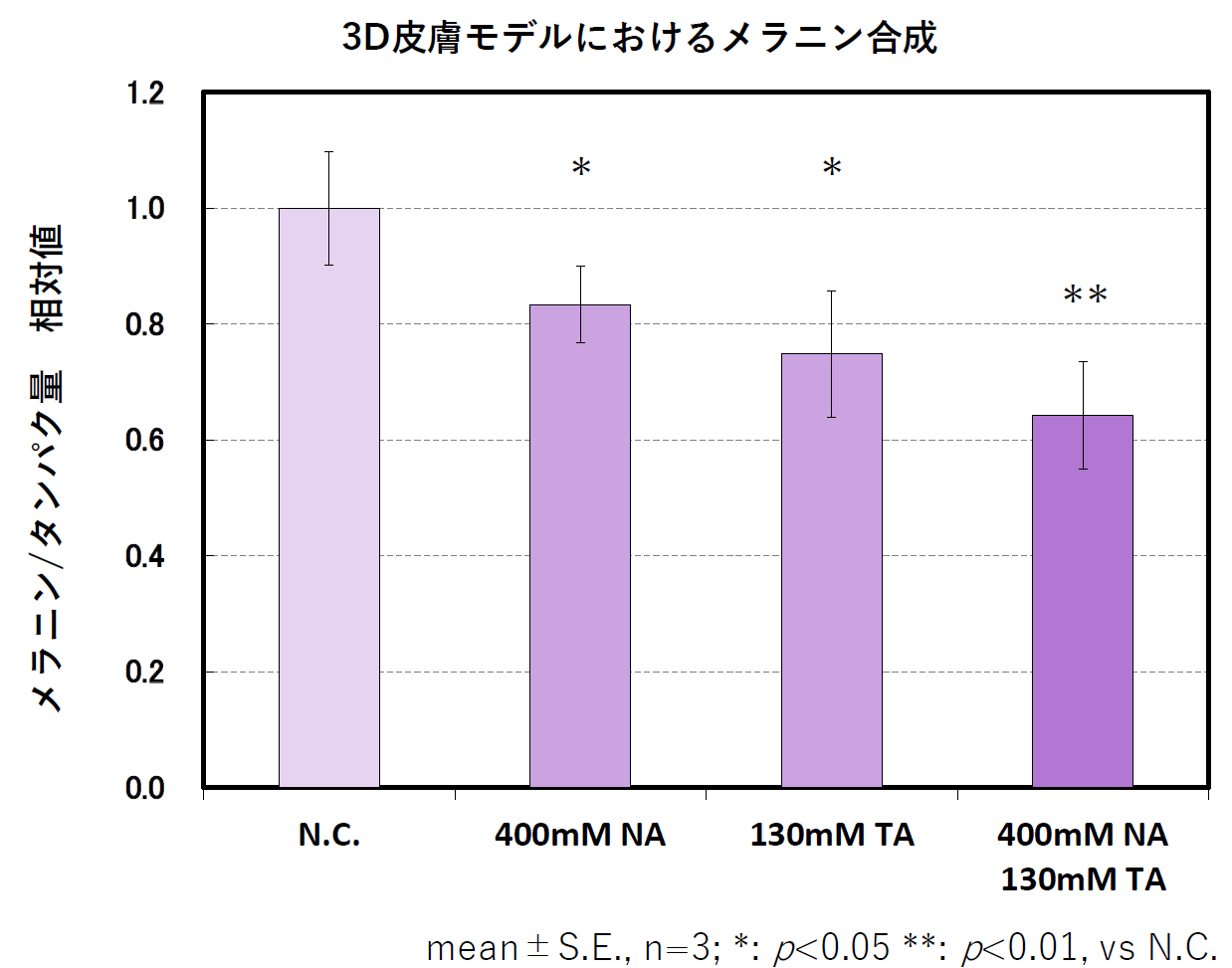ヒト由来細胞を用いた皮膚モデルにおいて、ナイアシンアミドの添加によりメラニン合成が抑制されまし