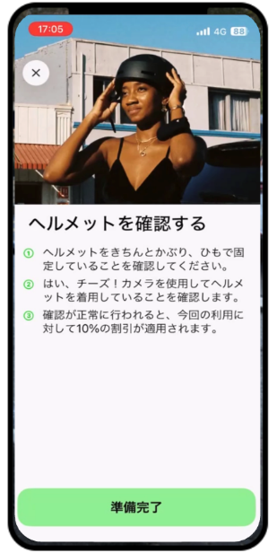 「ジオフェンシング制御」の導入により,利用者の操作に頼らずシステム側でリスクを低減する策のほか,ヘルメットを被った自分の写真をアプリ経由で送ることで料金の割引特典を実施しています。