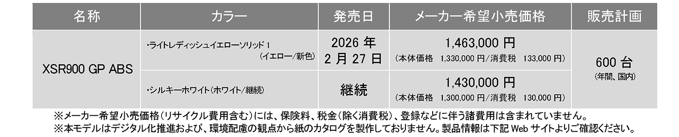 XSR900 GP製品サイト: https://www.yamaha-motor.co.jp/mc/lineup/xsr900gp/