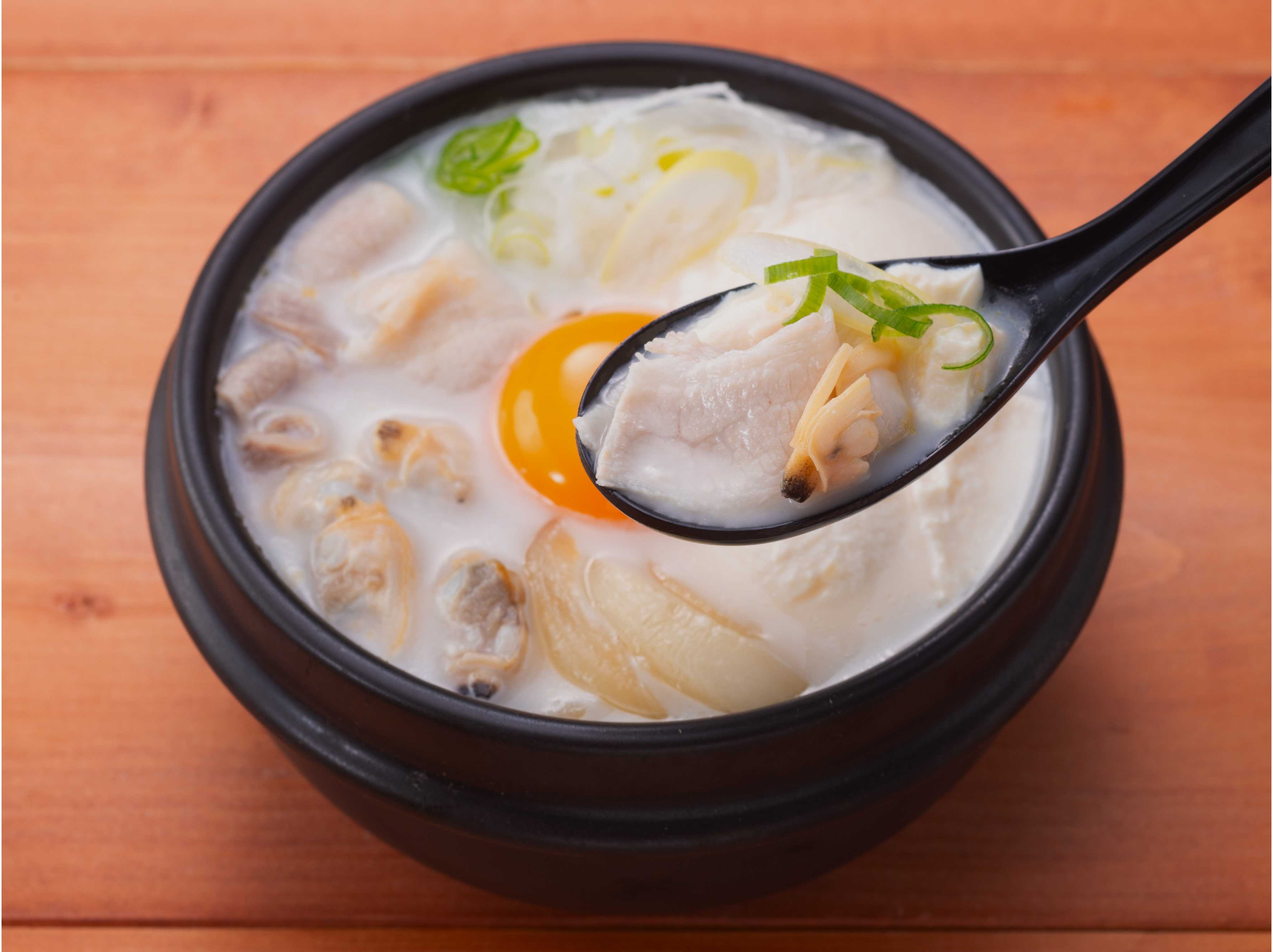 まろやかな白いスープが石鍋の中でぐつぐつと沸き立つ『石鍋豆富コムタン定食』は、「辛いものは苦手だけれど、石鍋のグツグツ感を楽しみたい」というお客様の声をきっかけに、約2年の開発期間を経て完成した一品です。