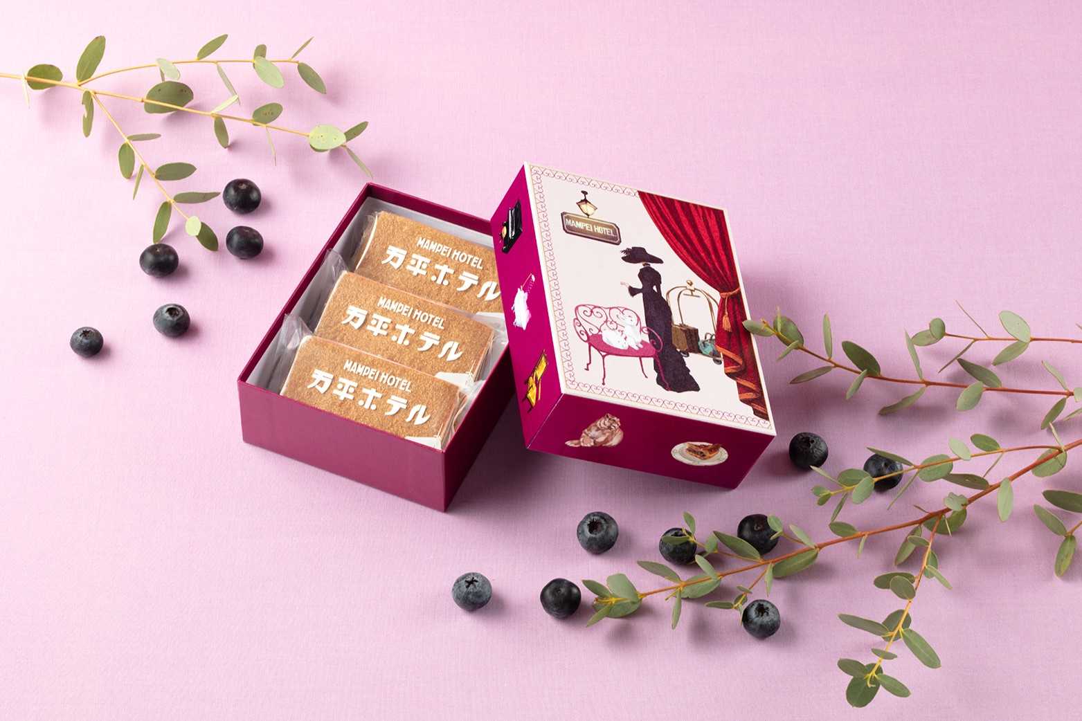2025年8月の発売以降、ご好評をいただいている「くるみのビターキャラメルサンド」に続き、ホテルの魅力を詰め込んだ「物語を味わうクッキーサンドシリーズ」がスタート。第1弾として登場するのは、甘さ控えめのクッキーで、カフェテラスの人気メニューである「ブルーベリータルト」に着想を得たクリームをたっぷりとサンドした「カシス&ブルーベリーサンド」です。フレッシュなブルーベリーをふんだんに使用したジャムとカシスを合わせた、華やかな味わいをお楽しみください。また、パッケージにはテレビCMでおなじみの万平ホテルで、貴婦人の優雅な滞在を表現。創業時から掲げられている看板や、猫足のバスタブ、さらにはアップルパイやロイヤルミルクティーなど、万平ホテルを象徴するモチーフがちりばめられています。