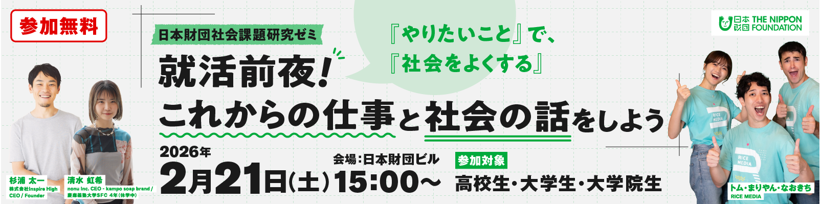 【第6回日本財団社会課題研究ゼミ】 就活前夜! これからの仕事と社会の話をしよう