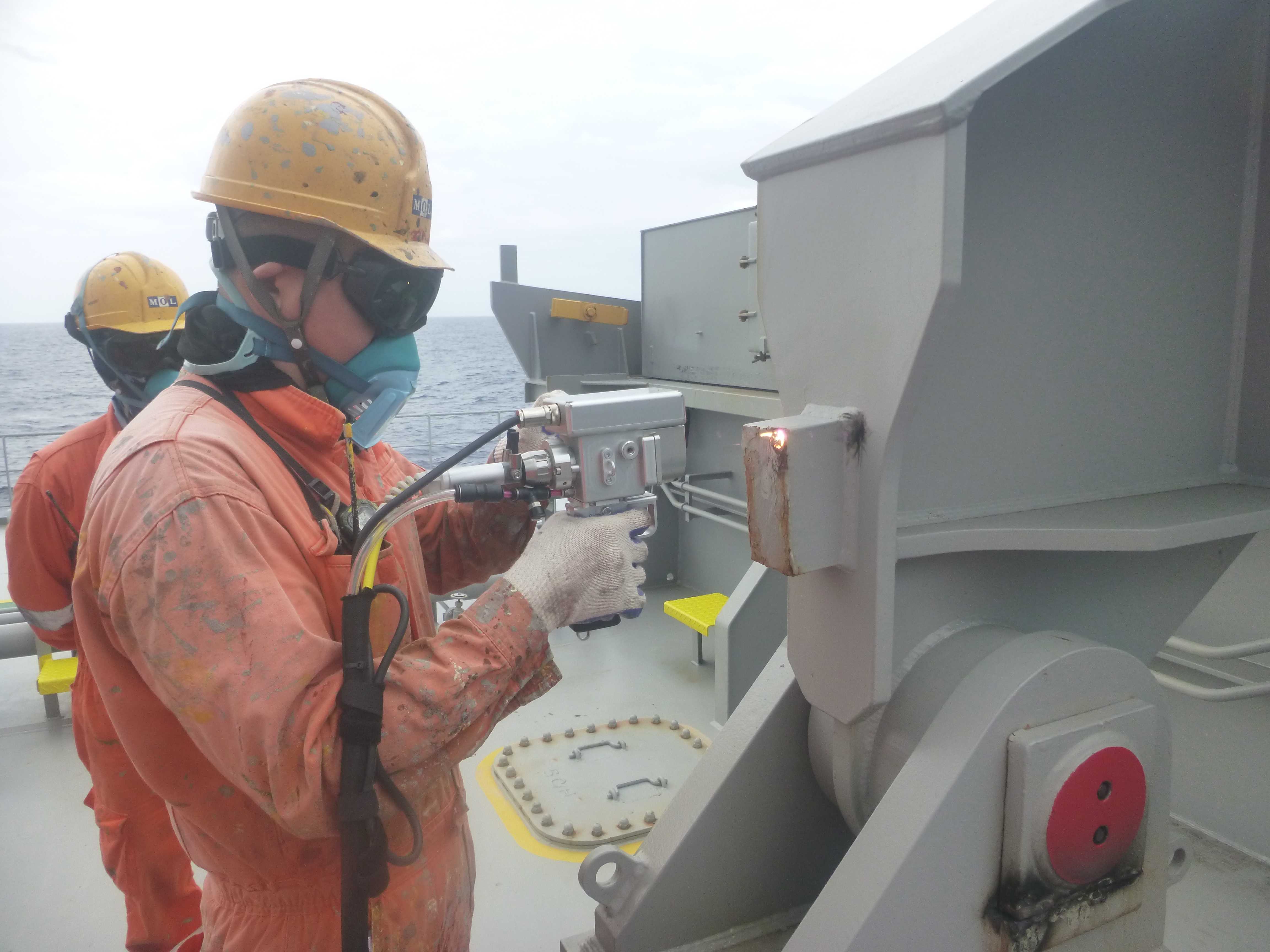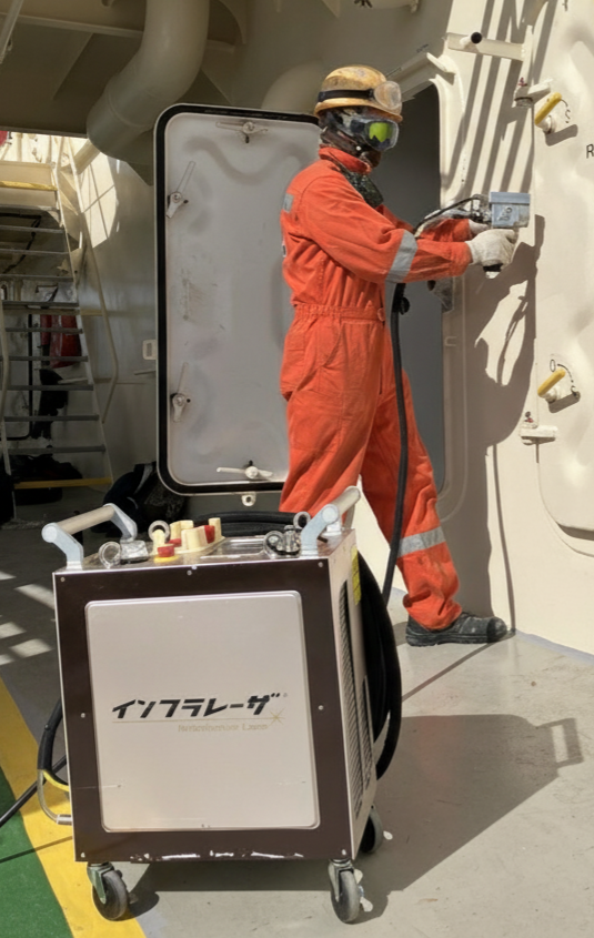 内容:航海中の錆や劣化した塗膜の除去等の甲板整備におけるレーザ施工の有効性の検証