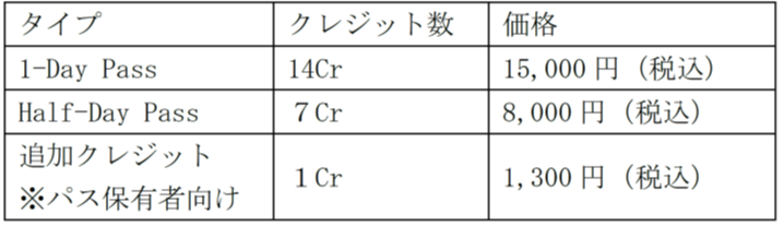 ※HANEDALL(7クレジット分)込みですが施設間の移動料金は含まれていません。