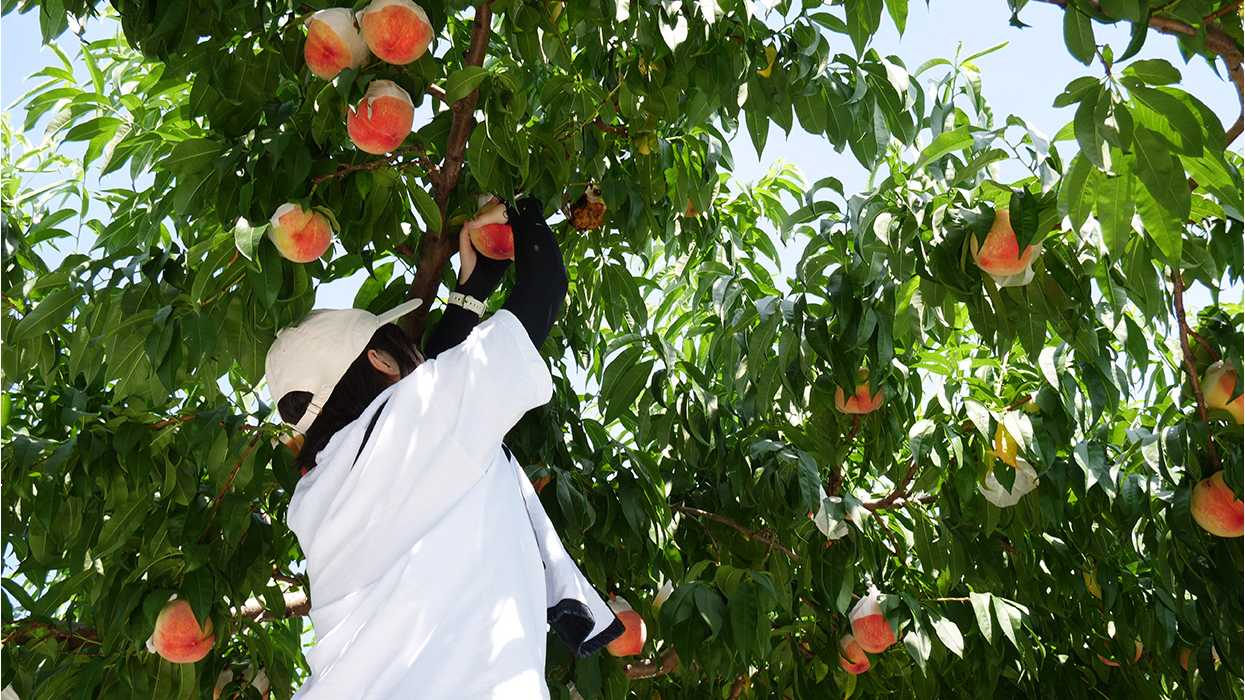 「桃の木オーナー制度」は、山梨の自然や農業をより身近に感じていただくこと、山梨の地域活性化に貢献することなどを目的に、2024年より毎年実施している企画です。オーナーの皆さまには、農園スタッフのサポートのもと、5月の袋掛け作業や7月の収穫体験など、年間を通じて桃づくりに関わっていただきます。収穫時には、山梨を代表する高級桃「春日居の桃」を、ご自身の手で収穫する特別な体験ができます。