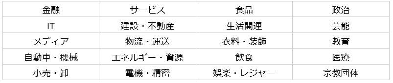参考:業界動向サーチ「ジャンル別業界一覧」
