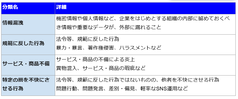 ※特定の層を不快にさせる行為:法令や社会規範に反する行為ではないものの、他者を不快にさせる行為(問題行動、問題発言、差別、偏見、SNS運用関連など)