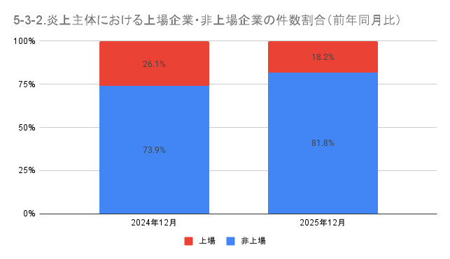 5-3. 炎上主体における上場企業・非上場企業の件数と割合(前年同月比)