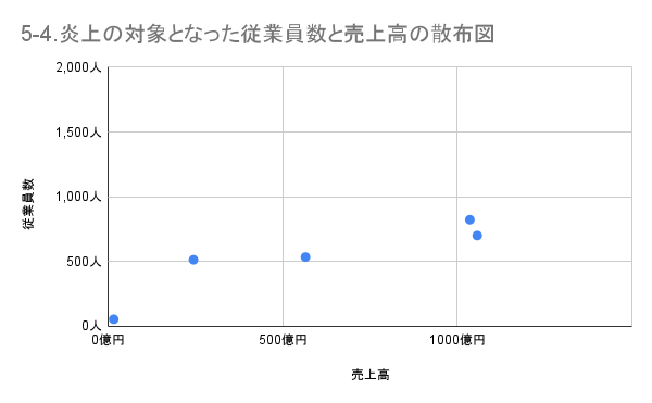 5-4. 炎上の対象となった従業員数と売上高の散布図