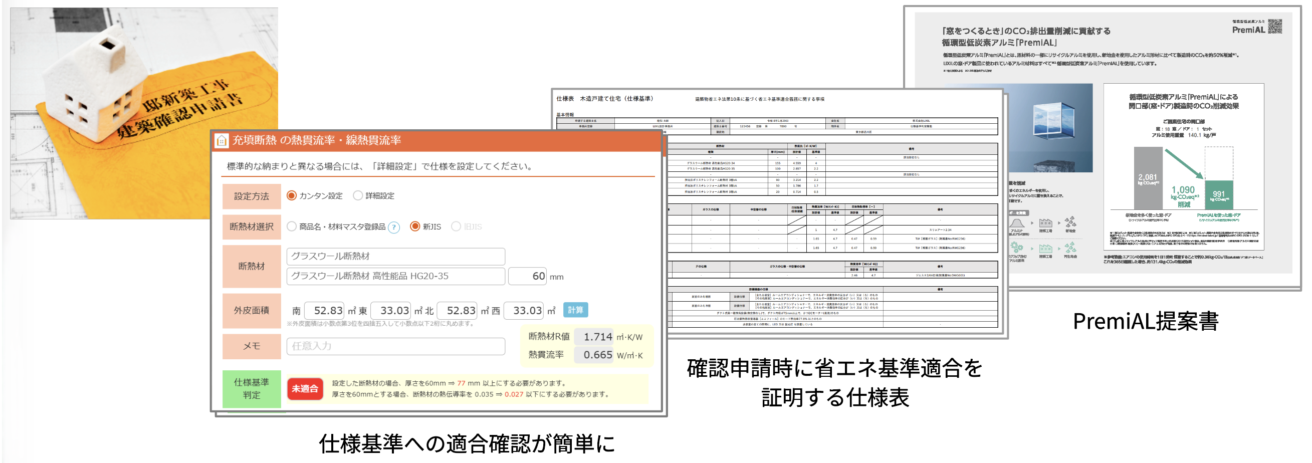 また、お客さまへの提案書に、「PremiAL」が使われた量に合わせてお客さまの住宅におけるCO₂削減効果数値を記載した「PremiAL専用提案書」を追加いたします。LIXILでは2025年10月から全アルミ製品にを使用しています。お客さまが目に見えるかたちで環境貢献を実感いただけるツールとして活用いただけます。