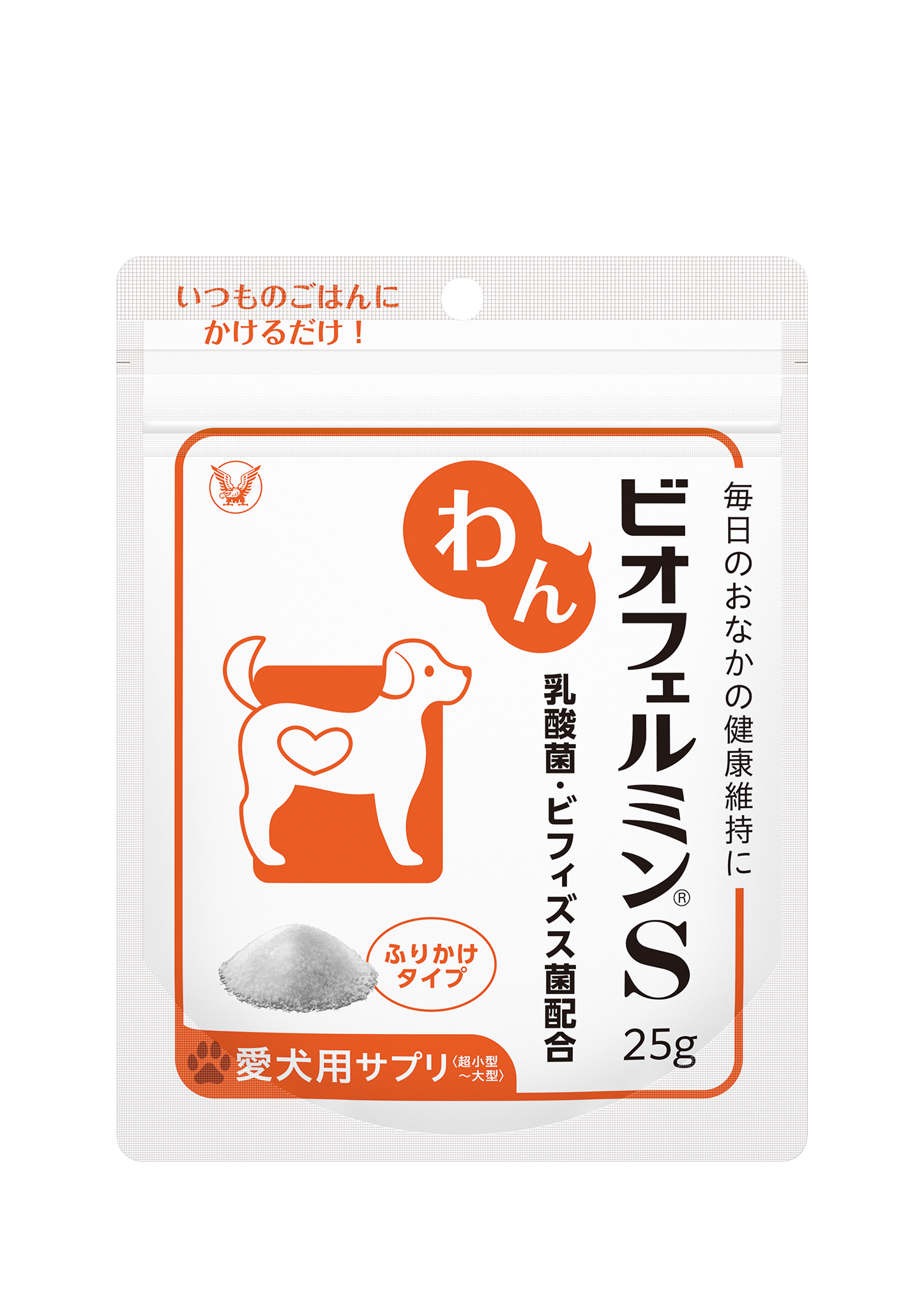 「わんビオフェルミンS」「にゃんビオフェルミンS」 は、ビフィズス菌と乳酸菌が生きたまま腸に届き、毎日のおなかの健康維持に役立ちます。プレーン味のふりかけタイプで、手軽にいつもの食事へ取り入れていただけます。