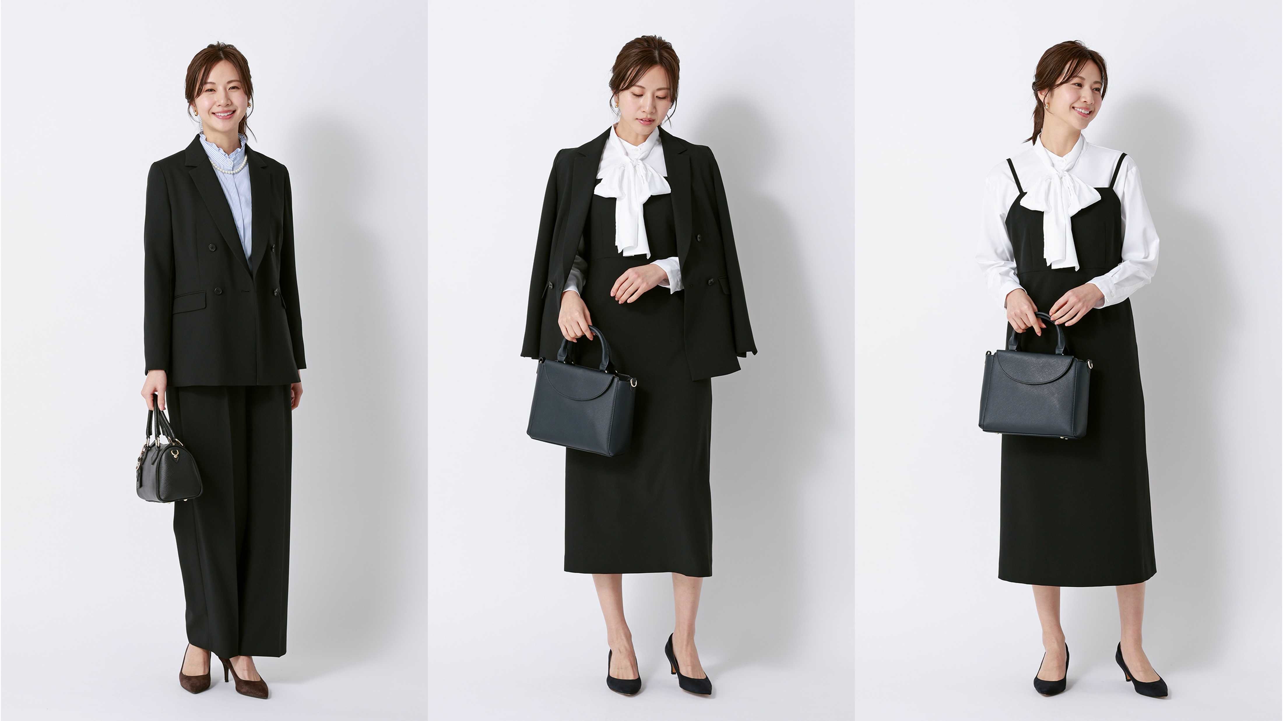 昨今、共働き世帯のライフスタイルは効率よく時間を使うことがスタンダードになる中で、柔軟な勤務体系が広がってきています。それに伴い卒入園式当日も「午前は式典、午後は仕事」を両立するビジネスパーソンが増えてきました。こうした背景もあり、装いは「式典専用」から「式典からビジネスまでシーン問わず着回しできる」アイテムへと考え方が変化してきています。そこで今回は、式典(オケージョン)から仕事(ビジネス)、さらには日常使いまでマルチに活躍する「ビジオケ(ビジネス×オケージョン)セットアップ」を企画しました。