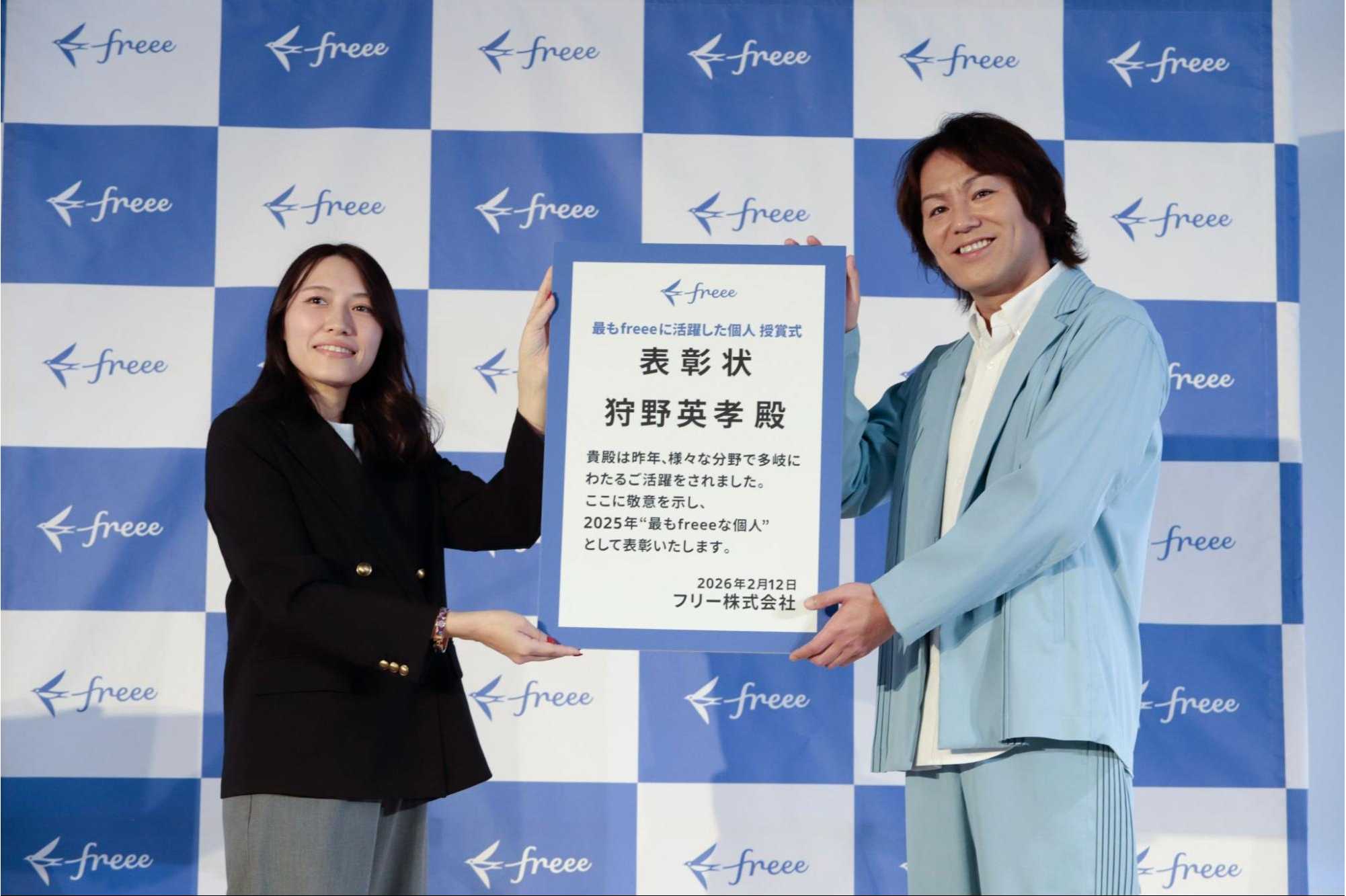 フリー株式会社(本社:東京都品川区、CEO:佐々木大輔、以下「freee」)は、2月16日に開始する2025年度の確定申告に合わせて、本日「最もfreeeに活躍した個人 授賞式」を開催し、「今年度最も多岐に渡り活躍した“フリー”な個人」として狩野英孝 氏を表彰しました。