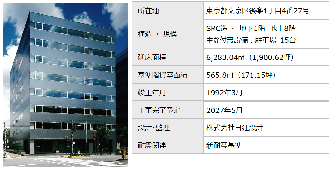 株式会社日本政策投資銀行(以下「DBJ」)、DBJアセットマネジメント株式会社(以下「DBJAM」)、株式会社日建設計(以下「日建設計」)、九州電力株式会社、芙蓉総合リース株式会社、みずほリース株式会社、株式会社三井住友銀行、三井住友信託銀行株式会社、株式会社三菱UFJ銀行、(以下「参画各社」)は、「ゼノベ(ゼロ・エネルギー・リノベーション)」プロジェクト※第2号案件(以下「本件」)として、日建設計後楽園ビル(東京都文京区後楽1丁目4番27号)の環境改修を実施いたします。