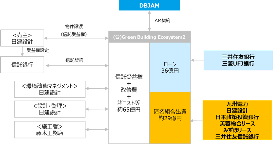 本件では、ゼノベプロジェクト第1号案件の参画者であるDBJ、DBJAM、日建設計に加え、民間金融機関をはじめとしたレンダー/投資家が参画することで、環境改修を「コスト」ではなく「投資」として成立させる市場形成を後押しし、ゼノベのさらなる発展を推進してまいります。なお、DBJは、本件が日建設計や参画各社との連携を通じて不動産投資市場における環境改修投資の活性化に寄与し、不動産業界のネットゼロ実現に貢献する取り組みであるとして、「特定投資業務(注1)」の一類型である「グリーン投資促進ファンド(注2)」を活用し、本件に資金を供給しました。