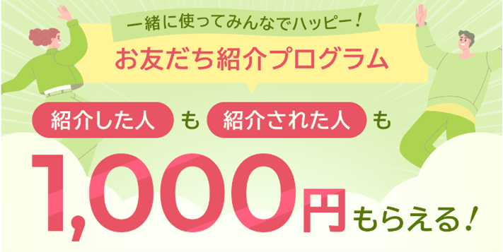 お友だち紹介により、最大10,000円(現金)をプレゼントします。