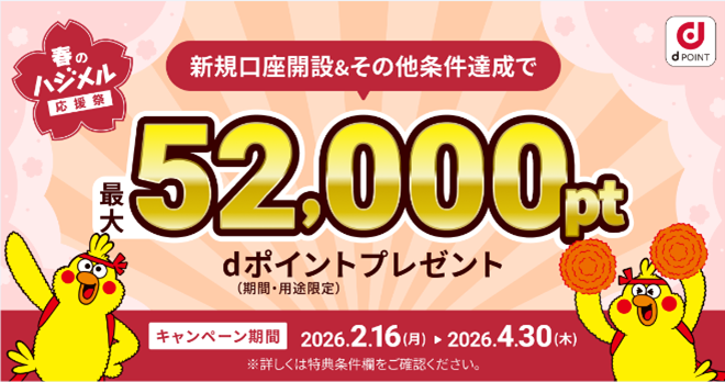 「春のハジメル応援祭」新規口座開設キャンペーンの詳細は、下記URLをご確認ください。