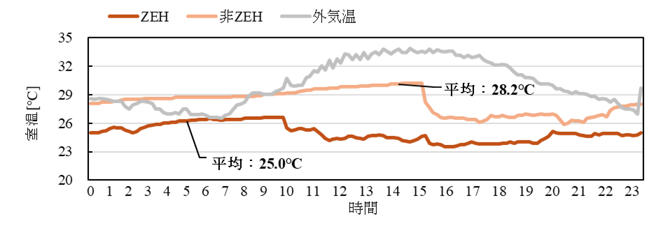 ZEH・非ZEH代表住戸における夏季(9/15)の居間室温
