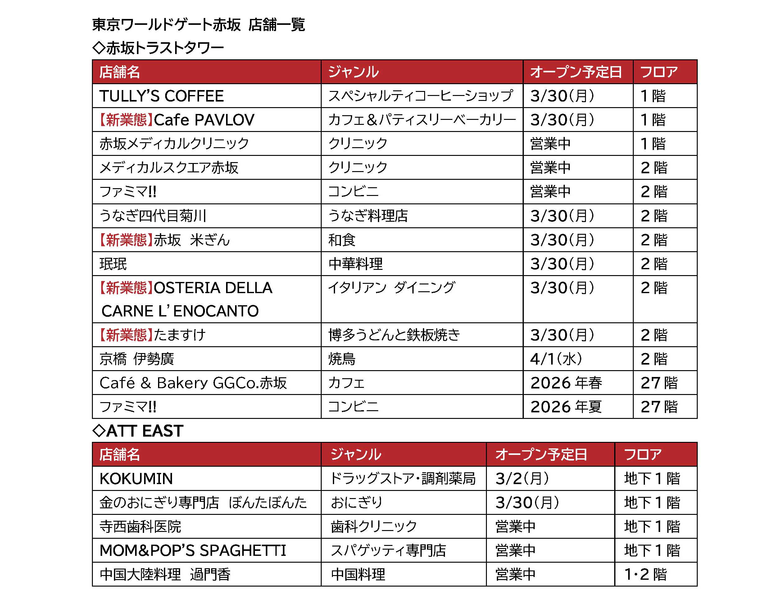 森トラスト株式会社は、大規模複合開発プロジェクト「東京ワールドゲート赤坂」において、新たなショップ&レストランがオープンすることをお知らせいたします。今回、4つの新業態を含む14店舗が加わることで、全18店舗の構成となります。