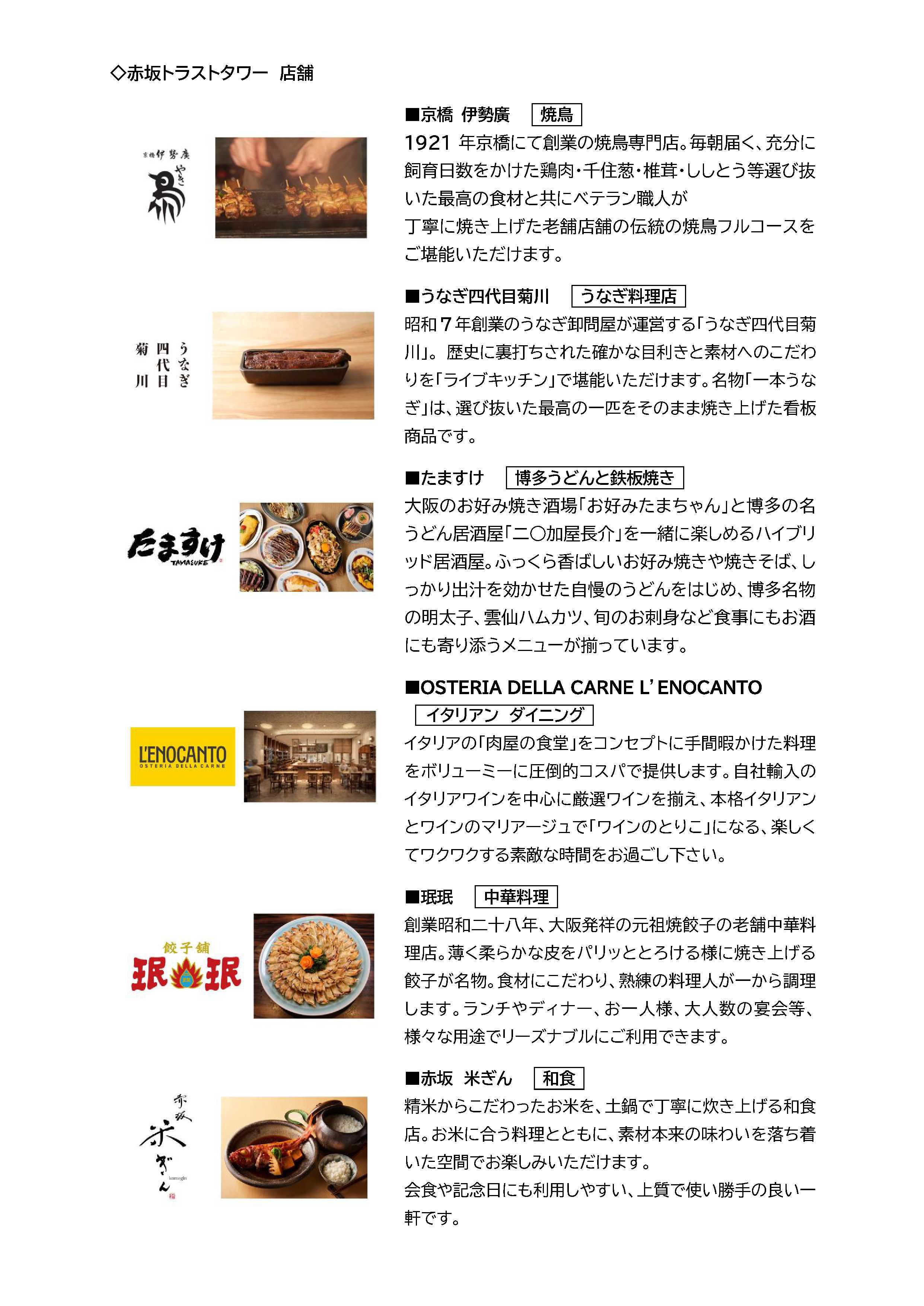 今回の店舗構成については、ランチでの日常使いからフォーマルなビジネスシーンまで、利用する時間帯や目的が異なる人たちが、それぞれにとって使いやすい形で活用できるラインナップが実現いたしました。博多の有名うどん居酒屋「二○加屋長介(にわかやちょうすけ)」と大阪のお好み焼き酒場「お好みたまちゃん」のハイブリッド居酒屋や創業100年超えの焼き鳥専門店 伊勢廣など、多彩な店舗を通じ、赤坂の魅力向上と快適な日常の創出に努めてまいります。