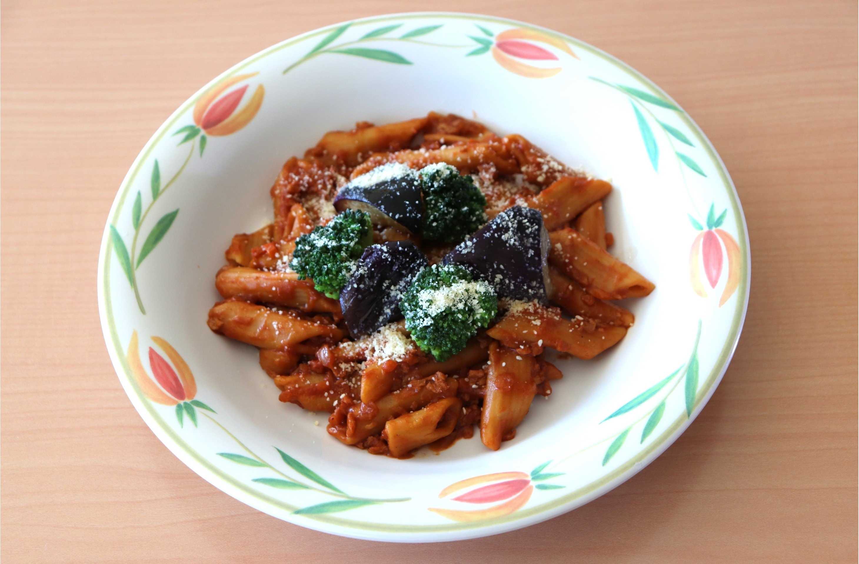 ③食べごたえ抜群!まるでお肉なミートソースペンネ