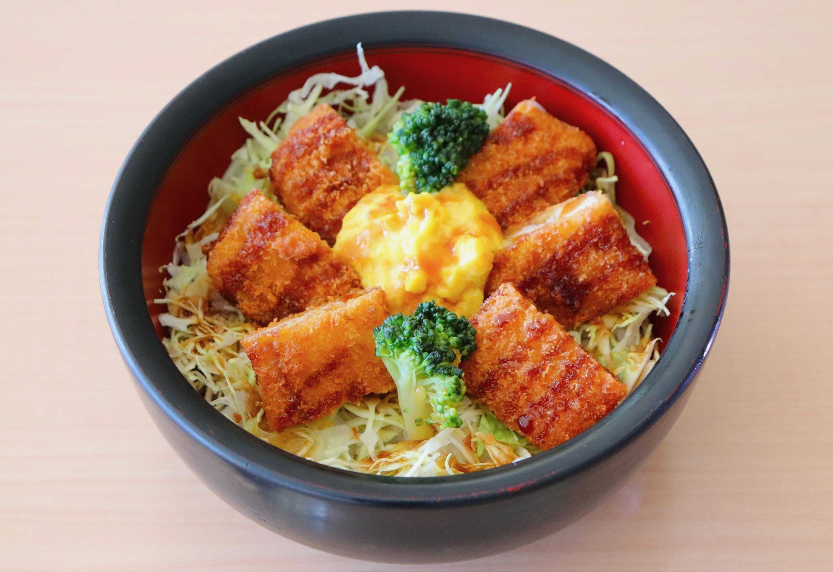 ②お肉じゃないのに大満足!おからカツ丼とろ~りほぼたまのせ