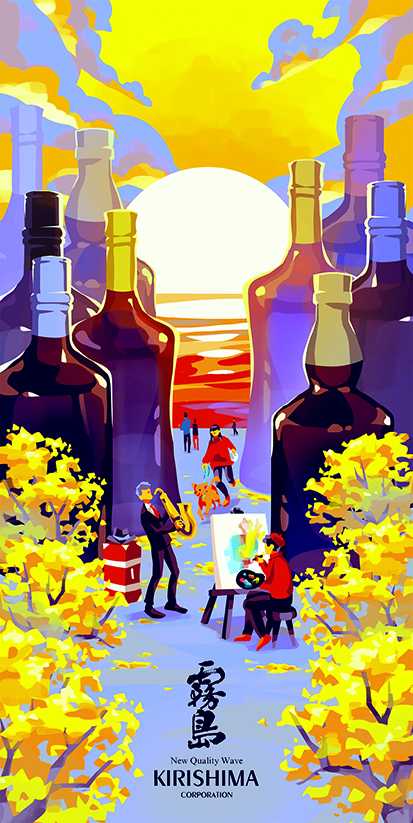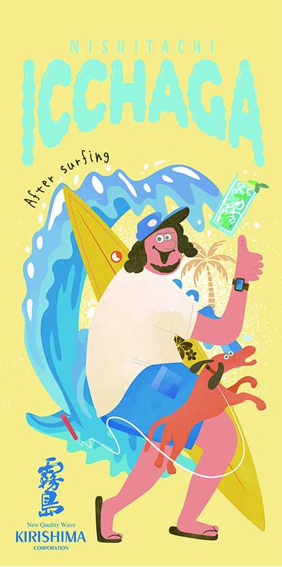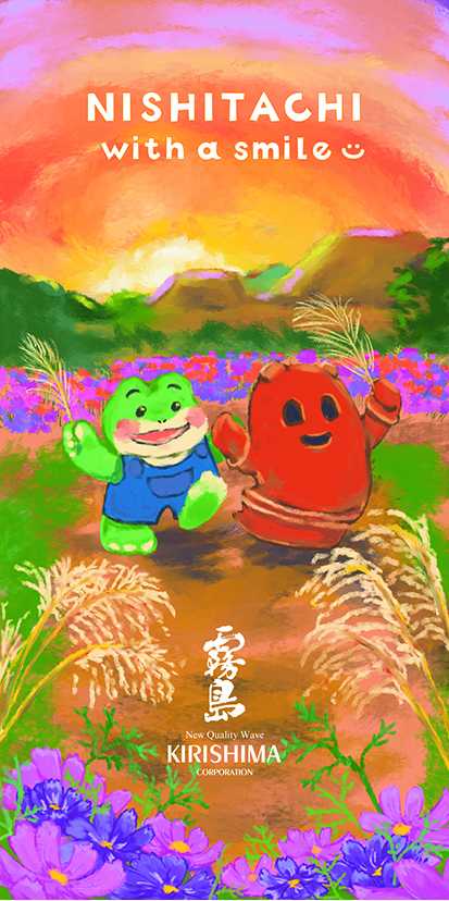 霧島酒造では、2001年より西橘通りと宮崎県内のデザイナーのさらなる活性化の一助になればという想いから、「ニシタチ霧島フラッグ」を街路灯に掲揚しております。「最優秀賞」、「優秀賞」、「霧島特別賞」の3作品に加えて、西橘通りの飲食店様をはじめとする関係者の皆様に選出いただく「ニシタチ特別賞」を1作品選出いたしました。だれもが「いっちゃが」と感じるような心地よい4作品を、ニシタチでぜひご覧ください。