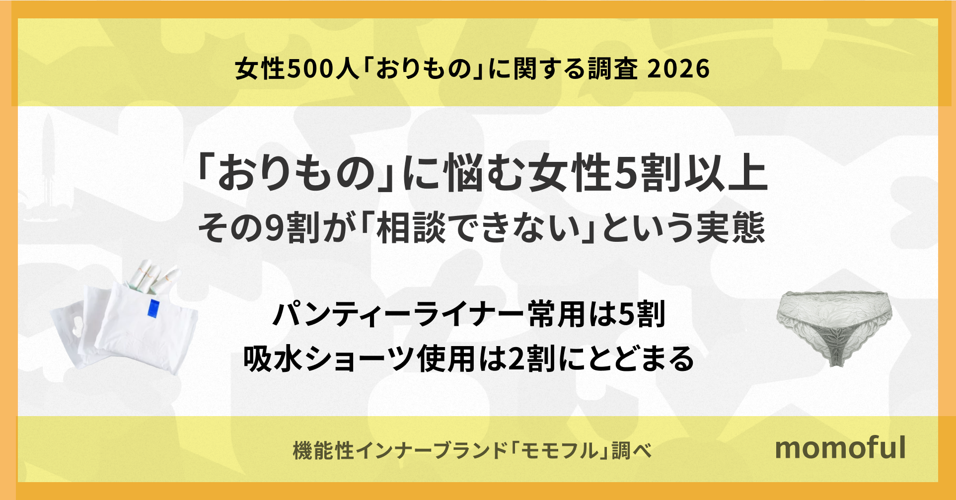 日常の生理現象であるにもかかわらず、女性のウェルビーイングと持続可能性の観点で、依然として個人の中で処理されている沈黙のテーマが「おりもの」です。「世界中の女性のQOLを1%上げる」をミッションに掲げる機能性インナーブランド【モモフル】は、このフェムケアにおける未開拓領域に着目し、