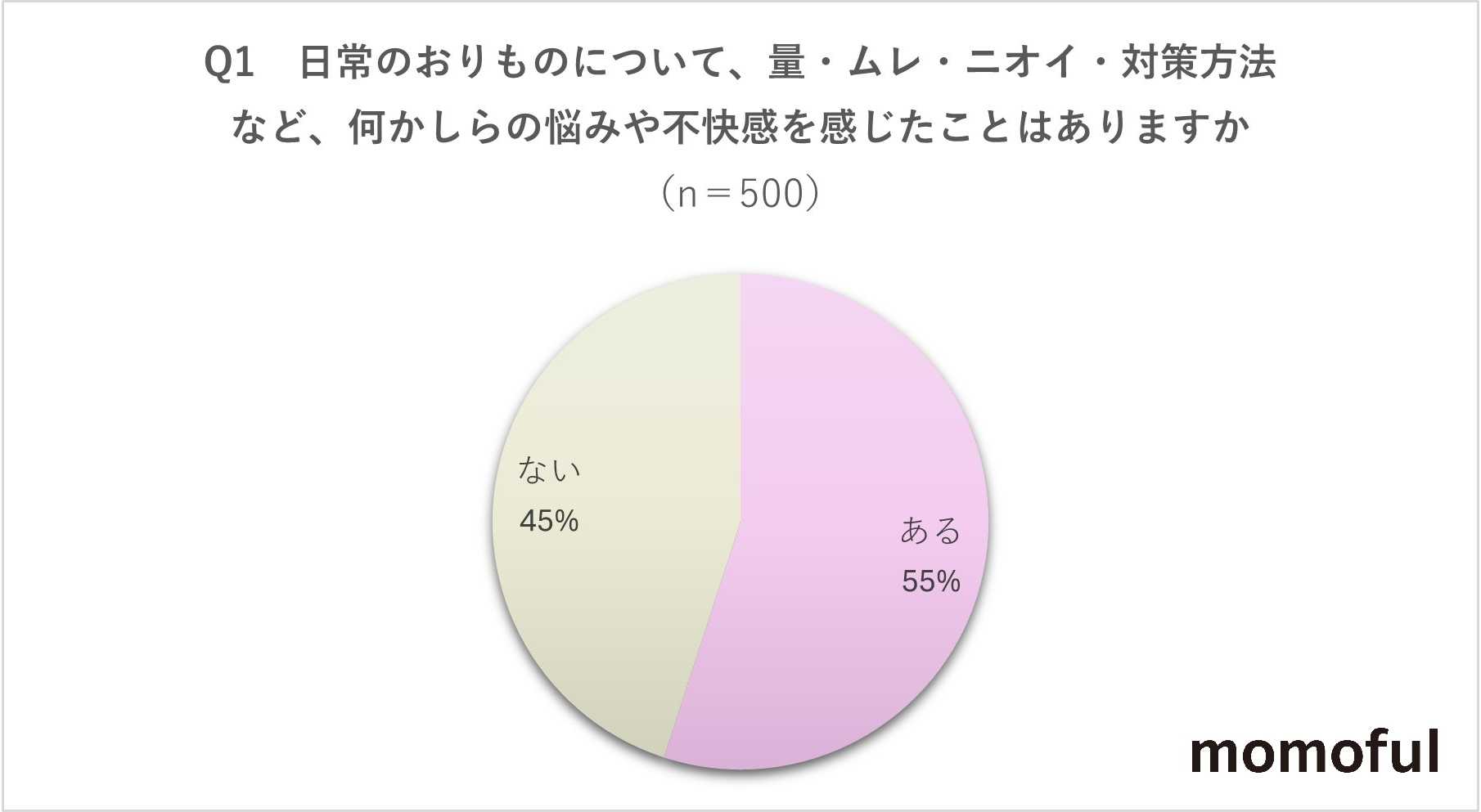 日常のおりものについて、量・ムレ・ニオイ・対策方法など、何かしらの悩みや不快感を感じたことはありますか(n=500・単一回答)