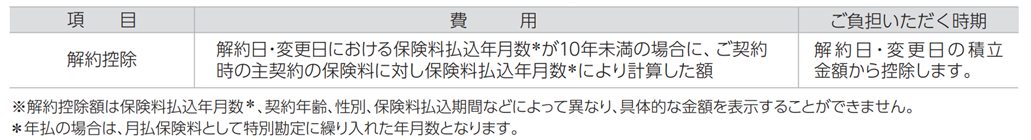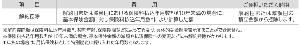 10年未満は解約・減額・払済保険への変更時に費用*1がかかります