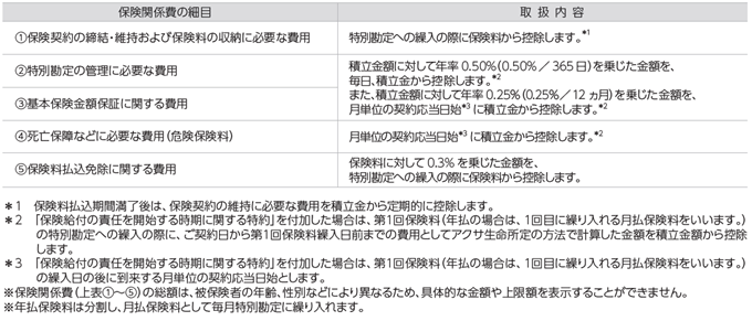 - 特別勘定に繰り入れた後に、死亡保障などに必要な費用や運用関係費を特別勘定資産から定期的に控除します。