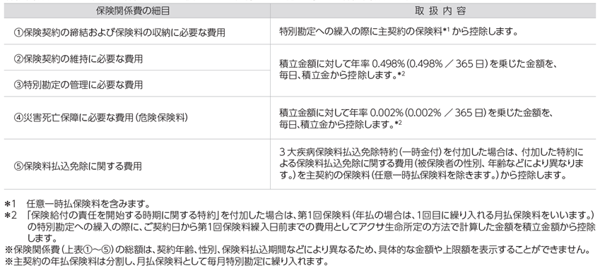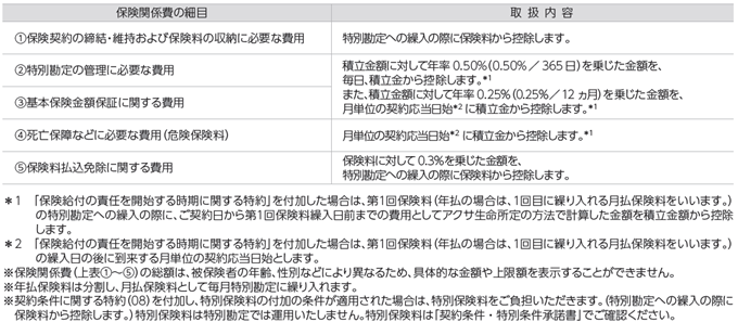- この保険にかかる費用には、ご契約の締結・維持、死亡保障などにかかる費用および特別勘定の運用にかかる費用があります。