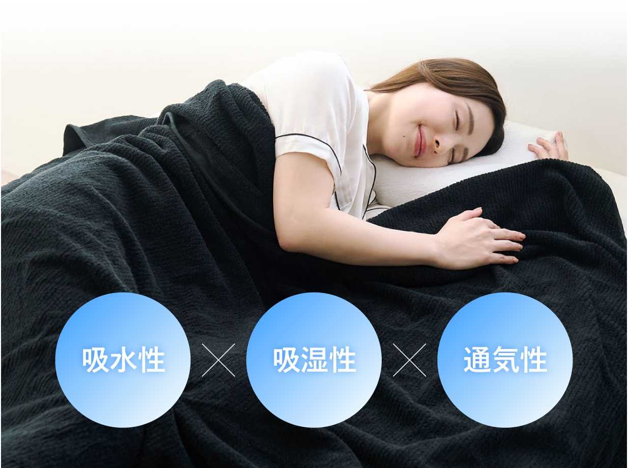 寝苦しさの原因となる寝汗や湿気は高温多湿な寝苦しい日本の悩み。すばやく吸い上げながら、こもりがちな熱や湿気を逃がしやすい構造を採用しました。湿度の高い季節でも、快適な睡眠環境づくりをサポートします。