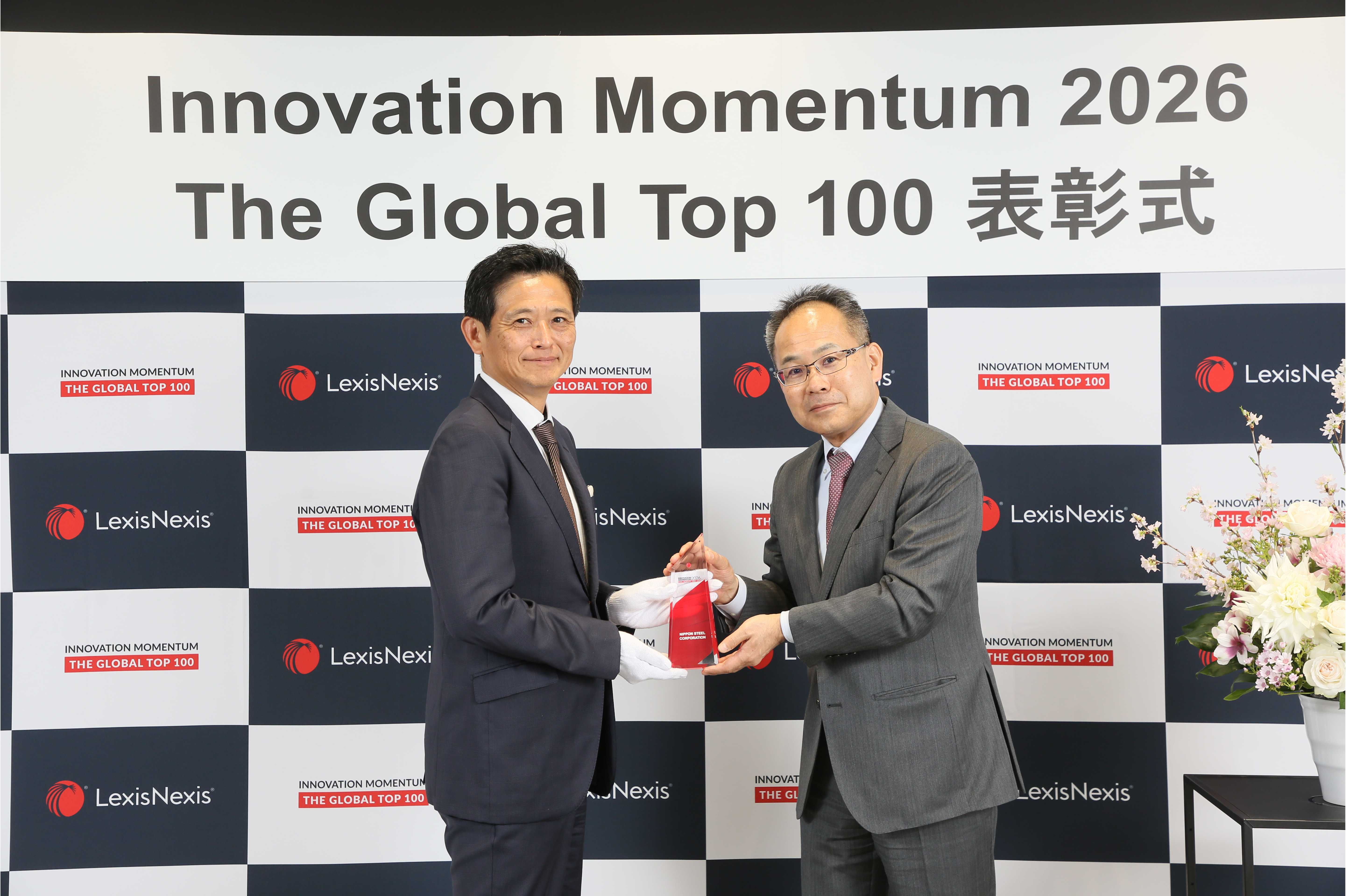 日本製鉄株式会社(以下、日本製鉄)は、知財・特許関係のデータベースや情報サービスを提供するLexisNexis Intellectual Property Solutions(以下、レクシスネクシス社)が選考する「Innovation Momentum 2026:The Global Top 100」に選出され、3 月5 日にトロフィーを授与されました。