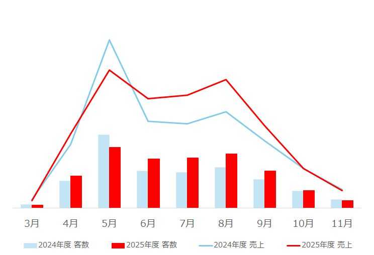 2025年度の京王BBQガーデンの利用客数・売上の推移