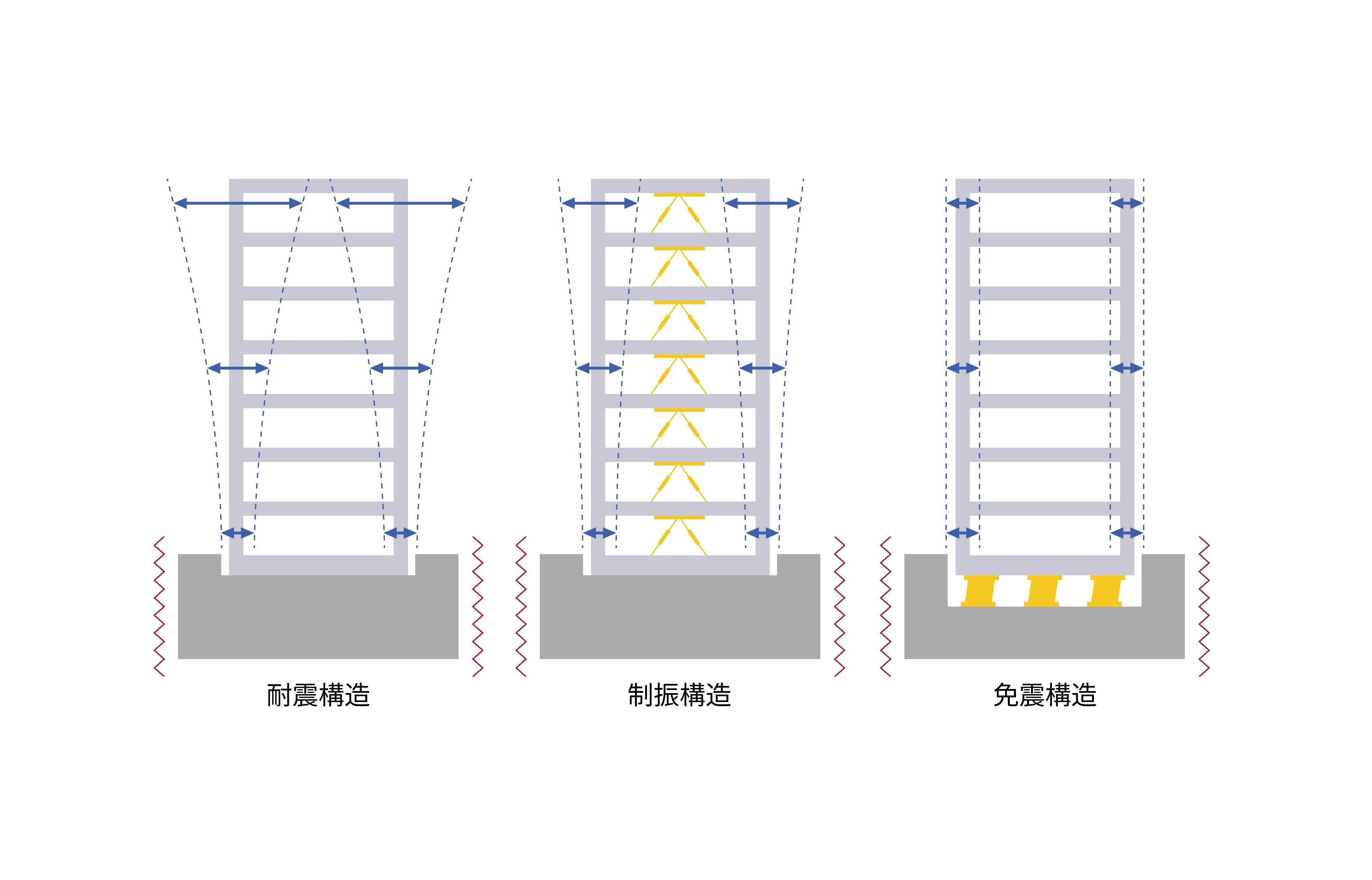 耐震・制振構造と比べ建物の揺れが少ない免震構造