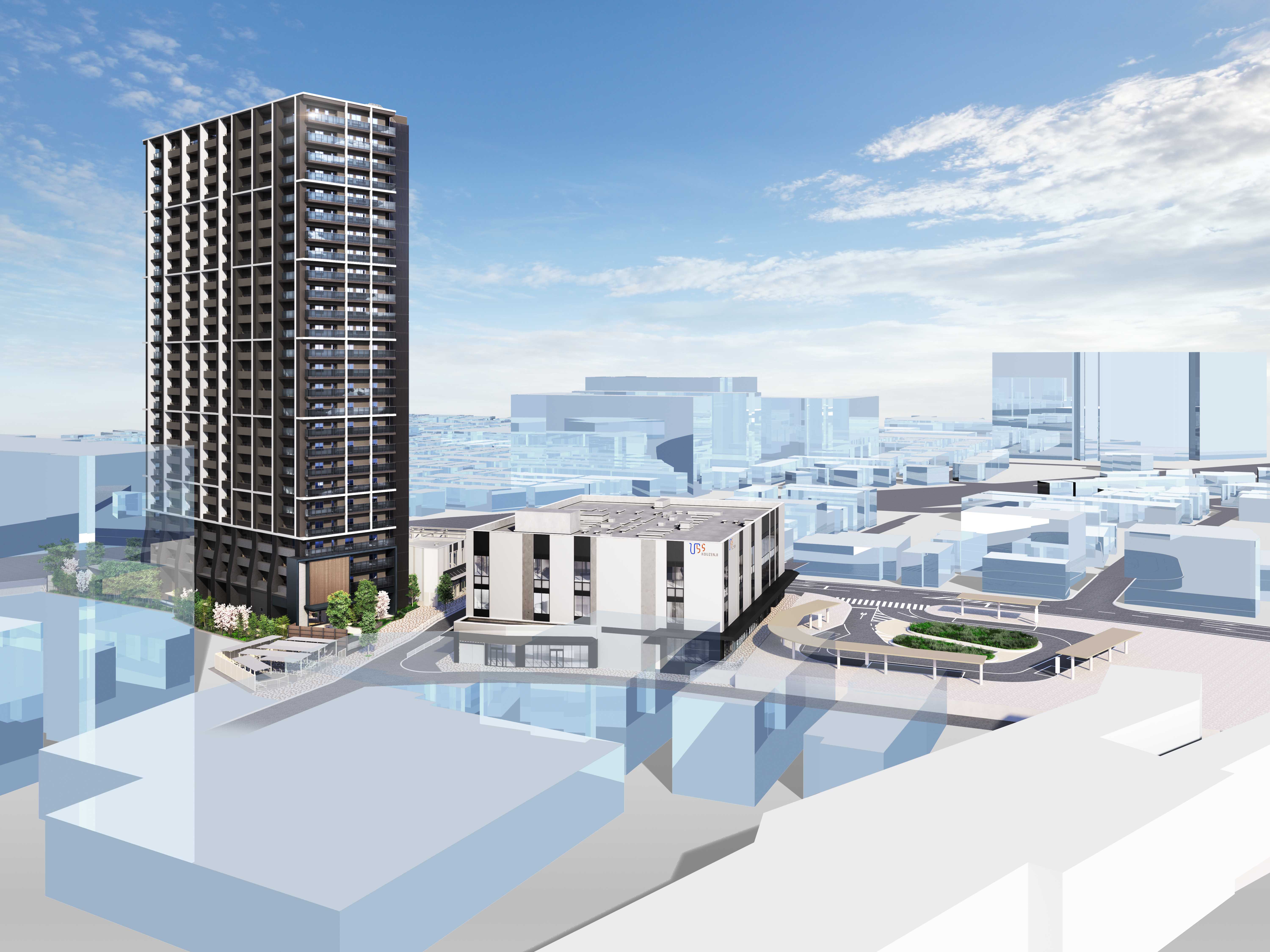 本再開発事業は、光善寺駅西地区市街地再開発組合を施行者として、大阪府枚方市の光善寺駅周辺で進められている「光善寺駅西地区第一種市街地再開発事業」であり、駅前広場・商業棟・住宅棟が一体的に整備されます。当社は参加組合員として住宅保留床(ほりゅうしょう)※3185戸分を取得し、当該マンション部分の分譲事業を担っています。分譲マンション「ザ・ライオンズ枚方光善寺タワー」は総戸数203戸(うち、一般分譲住戸185戸)を販売し、光善寺のランドマークとして、駅前エリアの活性化を目指します。