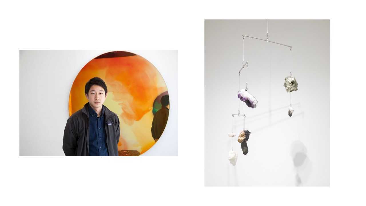 ▲表良樹《Floating minerals #1》size variable(referential size:1250×800×200mm),mineral, stainless steel, stainless wire,2024年