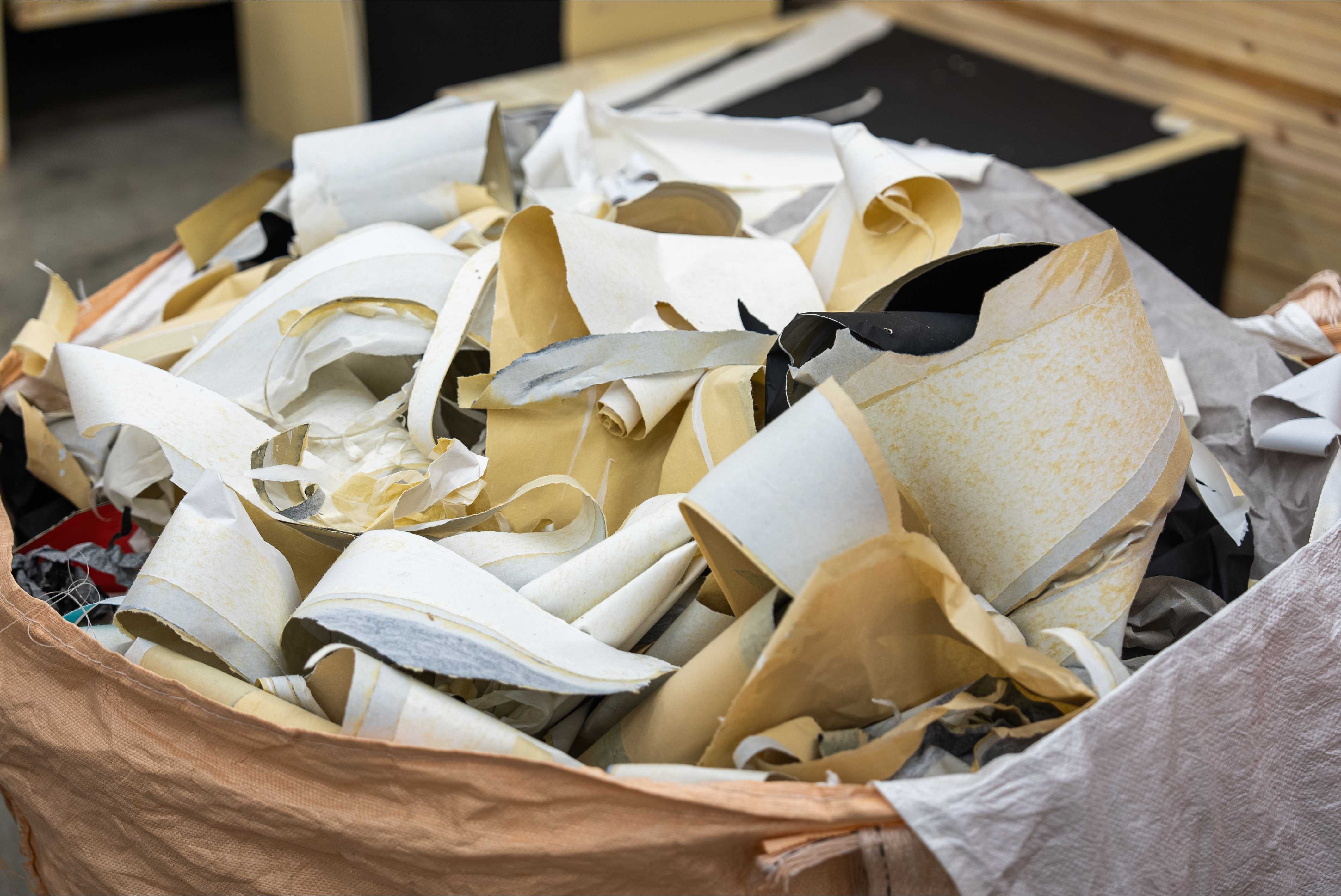 そこで、壁面や什器などの木工造作物において、LOOPGLUEを使用して表具仕上げを行うと、水をかけるだけで表具をきれいに剥がすことが可能になります。壁紙の剥がし残りが発生せず、木工パネルを傷めることなく再利用できるため、リユース時にも新品同様の状態で使用することができます。この特性により、壁面パネルを制作する際の木材の資材調達費および制作にかかる人件費を、それぞれ約15%削減できると見込んでいます。