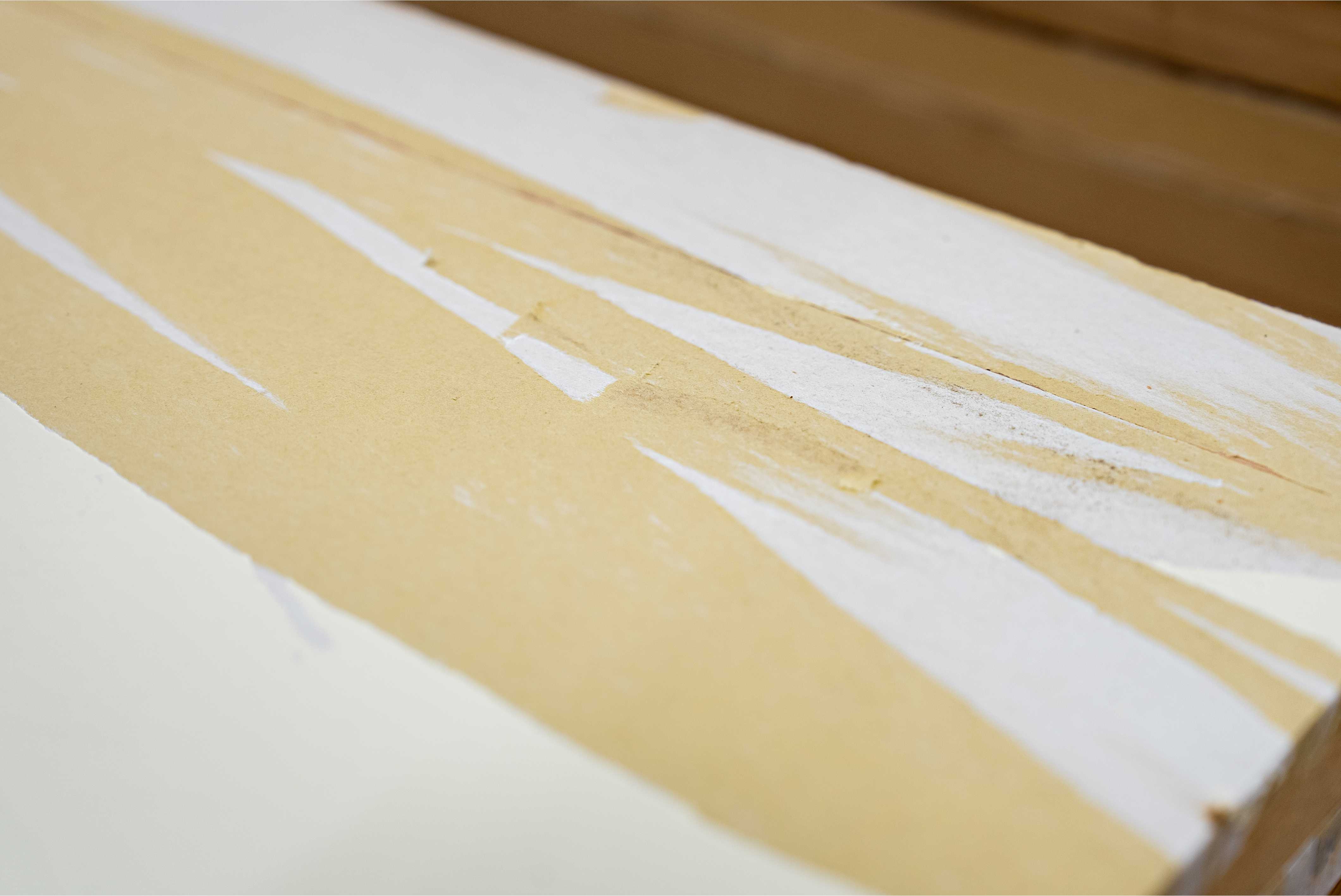 従来の方法で接着後剥がした表具と木工パネル:きれいに剥がせず、パネルに残ってしまう